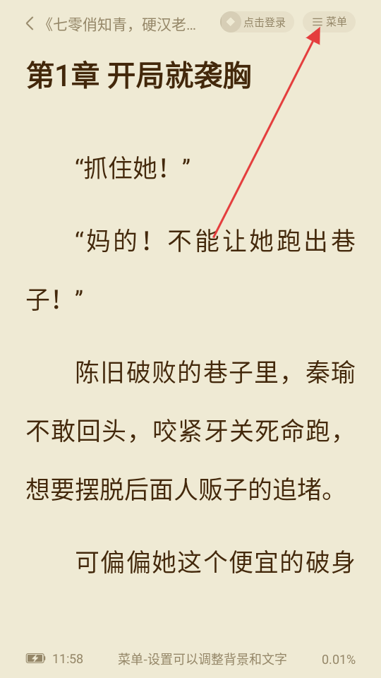 2、在阅读页面,点击菜单,展开更多功能选项。