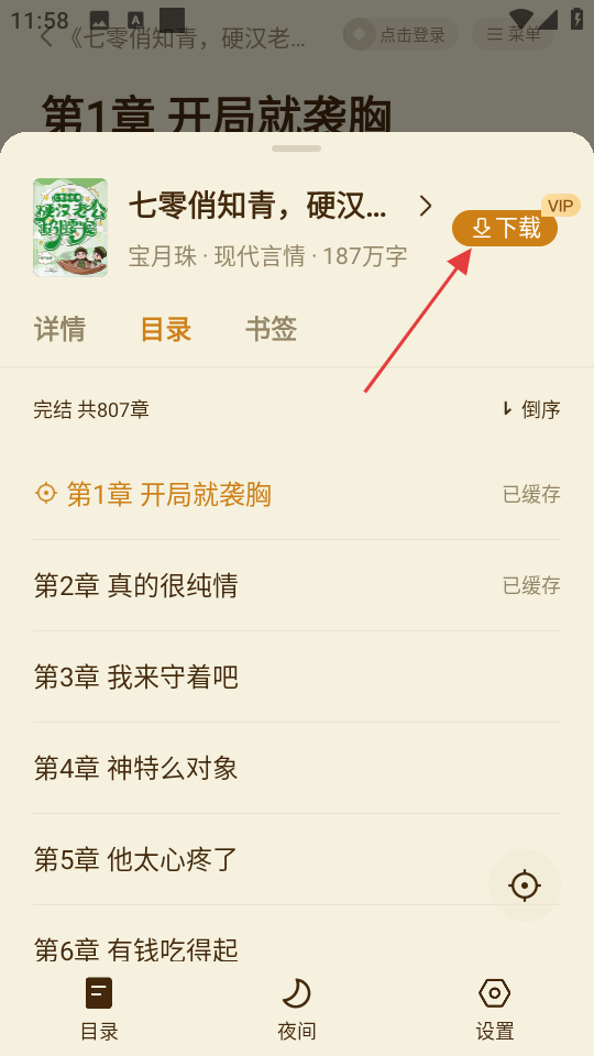 4、在目录页面,点击下载,可对书籍进行下载操作。