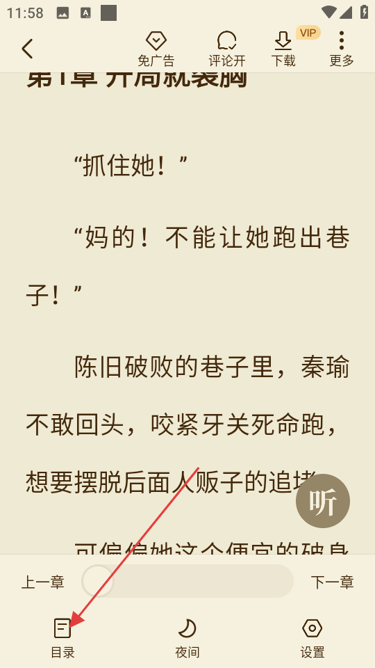 2、设置阅读模式:在阅读页面点击屏幕中央,可切换听书模式、调整字体大小与背景颜色,也能开启离线缓存,方便离线时阅读。