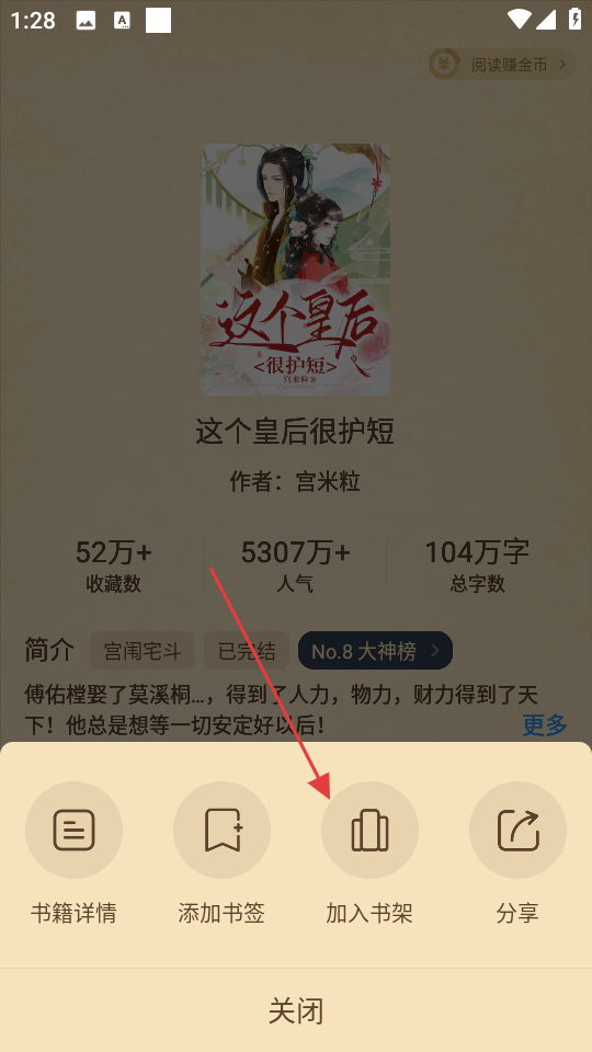 4、在展开的选项中,点击加入书架,将书籍添加到书架方便后续阅读。
