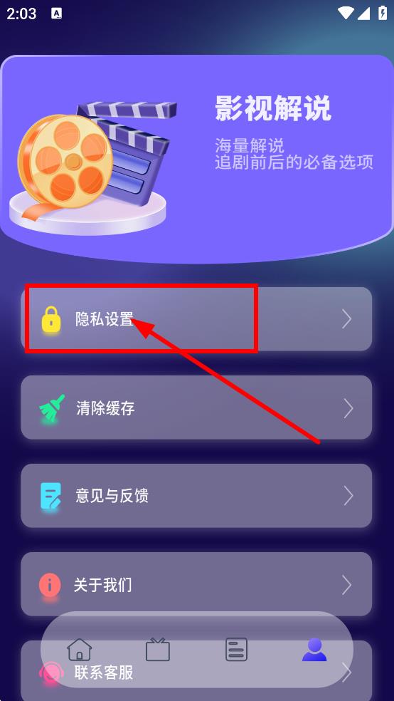 2、在页面中,点击隐私设置,进入隐私设置页面。
