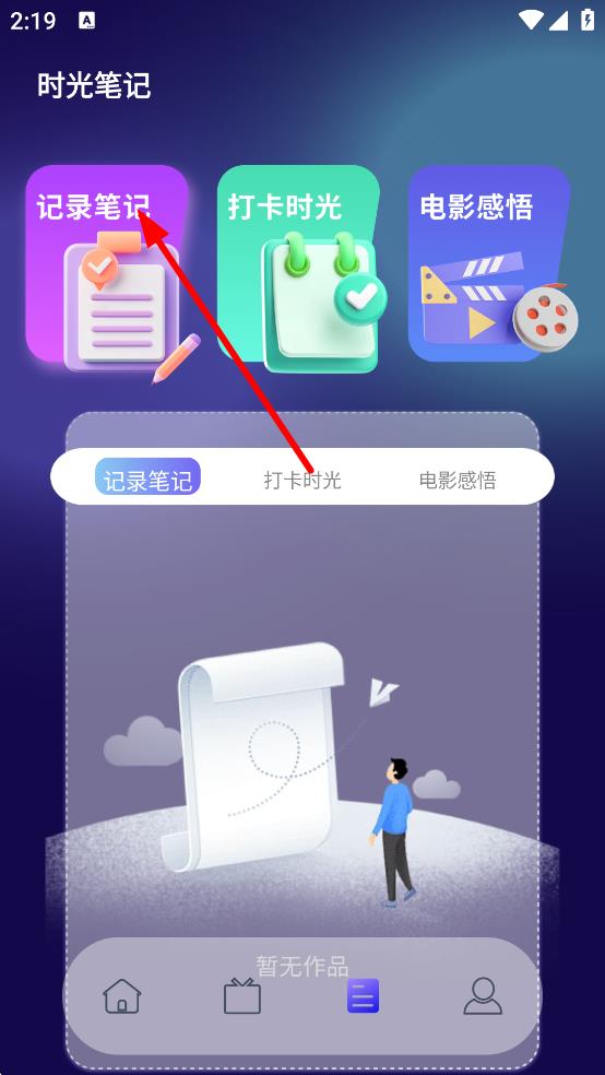 1、点击软件底部笔记图标,进入时光笔记页面。