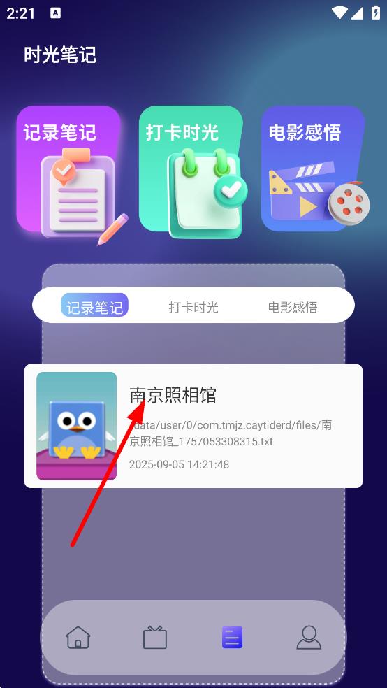 4、保存后,可在时光笔记页面看到记录的笔记,如南京照相馆。