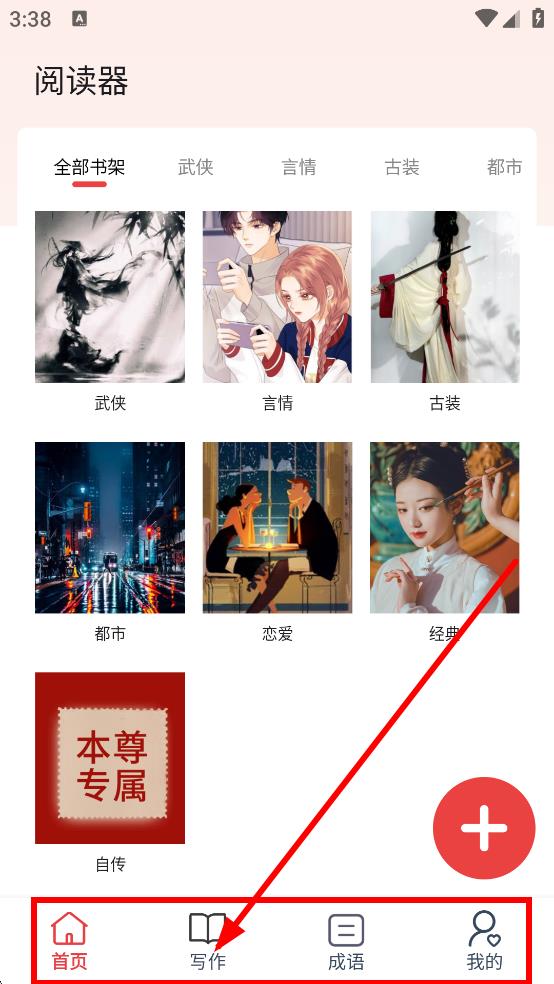1、进入首页,点击软件底部写作,进入阅读记录页面。