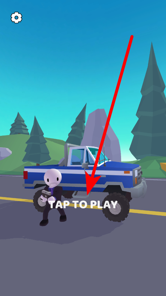 1、新手进入游戏,看到TAPTOPLAY提示,点击相应位置,开启在街口的枪战冒险,为后续的射击与闯关做好准备。