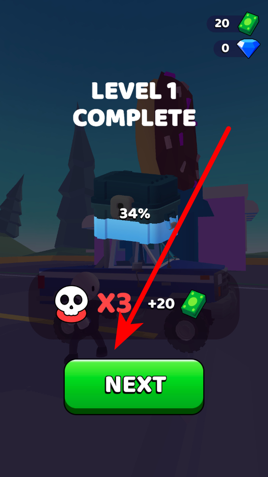 4、成功完成当前关卡后,会出现NEXT按钮,点击该按钮,进入下一个关卡,继续体验新的枪战挑战,不断推进游戏进程。