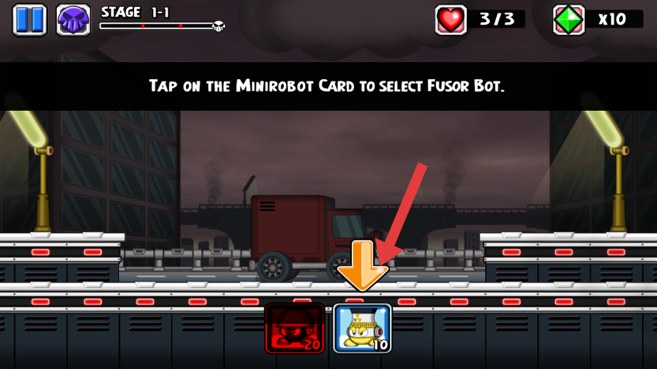 1、根据提示点击迷你机器人卡片来选择合适的机器人,不同机器人有不同能力,选择契合当前关卡需求的机器人。