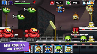 3、关卡探索与成就感:每个世界的关卡设计均有独特主题与挑战目标,玩家推进过程中不断解锁新场景、新敌人与新机器人;成功抵御敌人进攻、拯救世界。