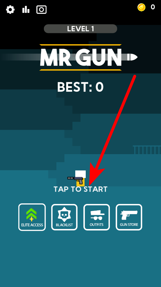 1、新手开始进入游戏,在界面找到点击开始提示区域,点击该区域,开启游戏的射击挑战,为后续的射击与闯关做好准备。