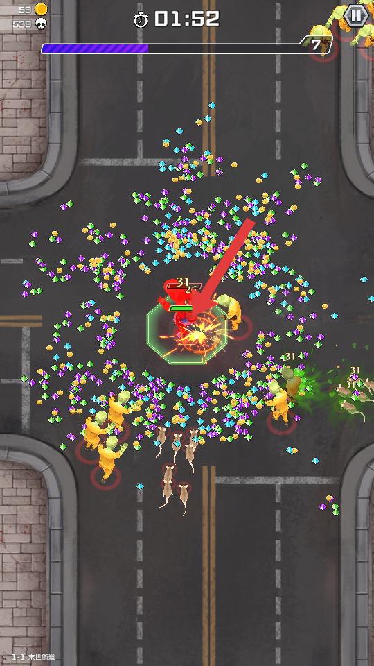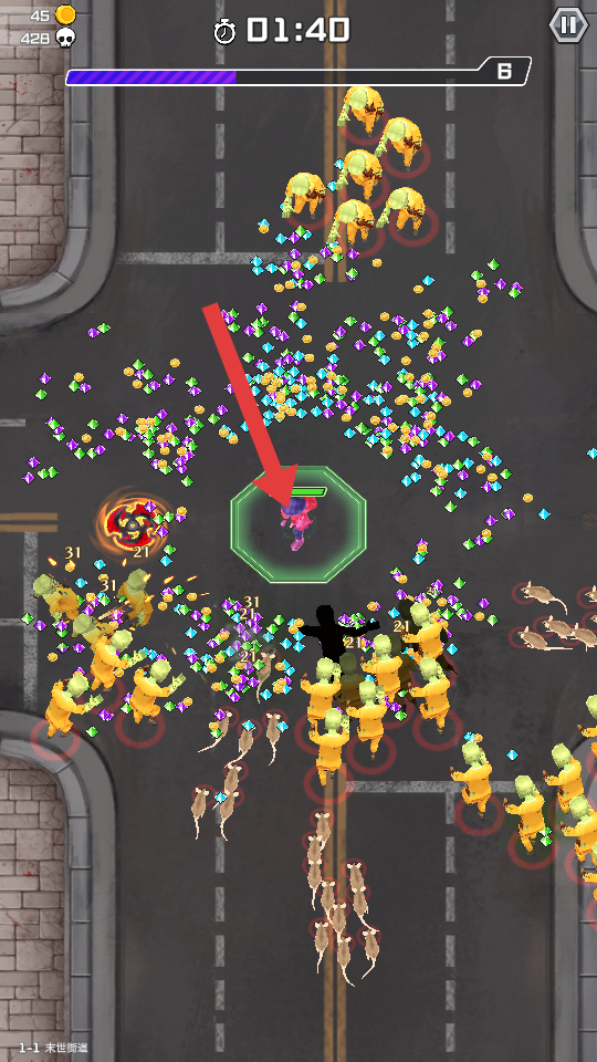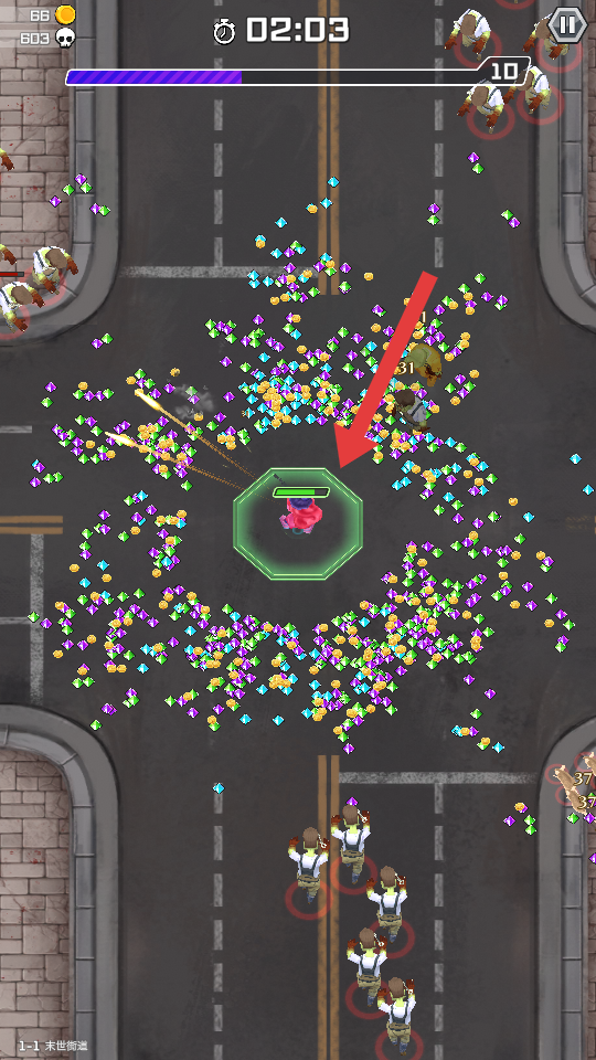 1、基础战斗启动:点击开始按钮进入游戏后,控制角色移动即可触发自动攻击,无需手动操作攻击指令,专注于躲避僵尸围堵与选择战斗路线,快速适应游戏节奏。