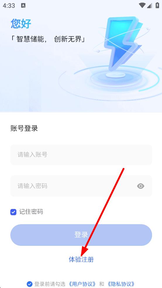 1、在登录页面,点击体验注册,进入体验注册流程。