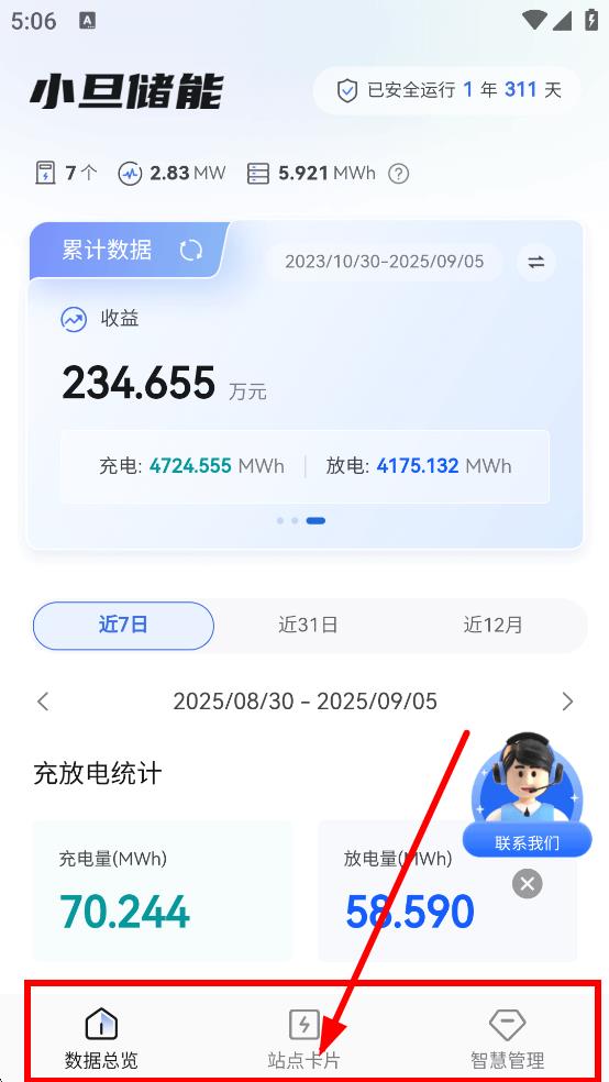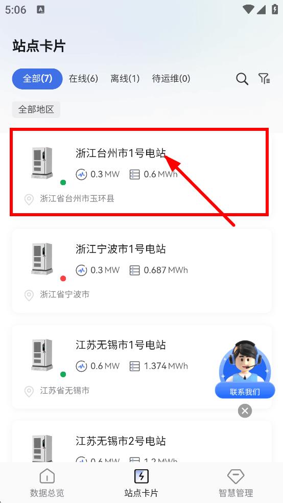 1、在小旦储能界面,点击站点卡片,进入站点卡片页面。