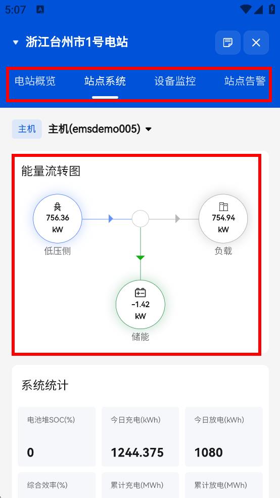 4、点击站点系统,查看能量流转图等站点系统相关内容。
