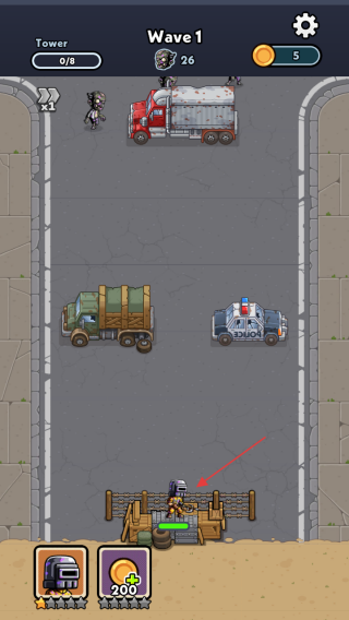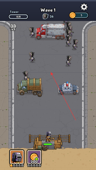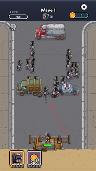 2、当僵尸从道路上方出现后密切关注僵尸行动路线利用塔台角色攻击靠近的僵尸。