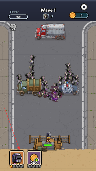 4、若有足够资源点击下方卡车图标等道具增强防御能力抵御Wave1僵尸进攻。