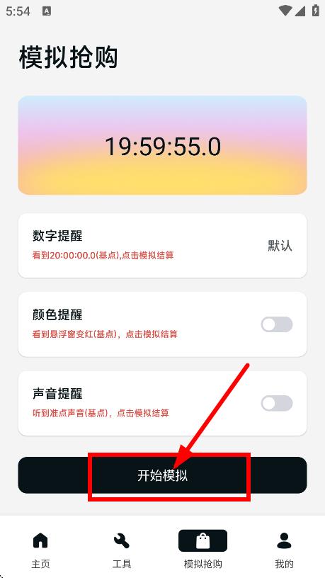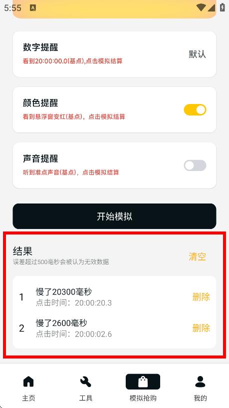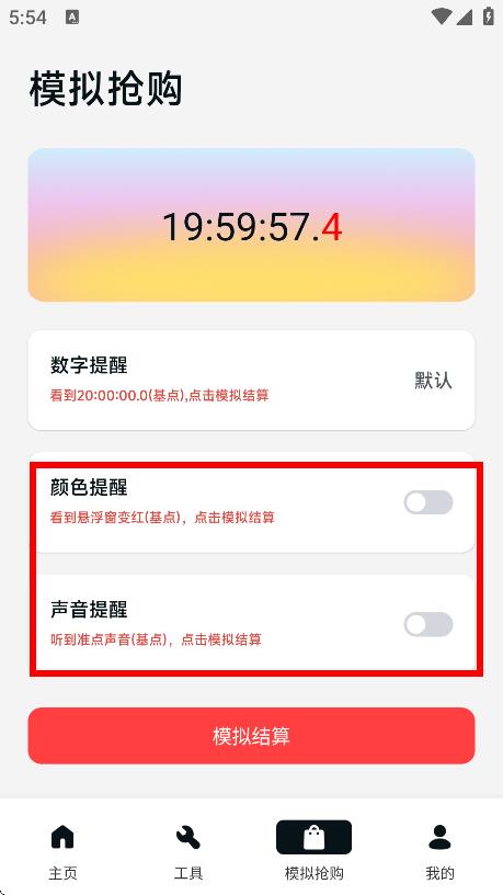 3、可根据需要开启【颜色提醒】【声音提醒】等功能,辅助模拟抢购。