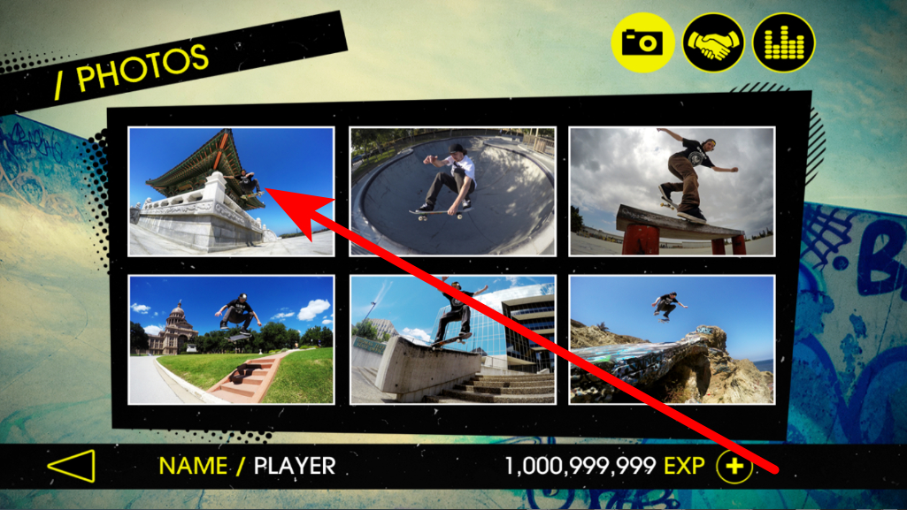 3、在正式开始滑板挑战前,可查看照片界面,欣赏各类滑板精彩瞬间,从中学习高手的滑板技巧与姿势,为自己的滑板操作积累灵感。