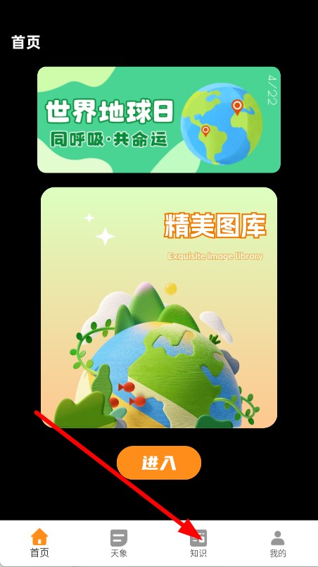 1、打开神奇地球仪APP首页,点击底部的知识按钮。