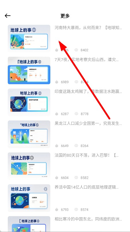 3、进入更多页面后,选择想要查看的地球大事件内容。