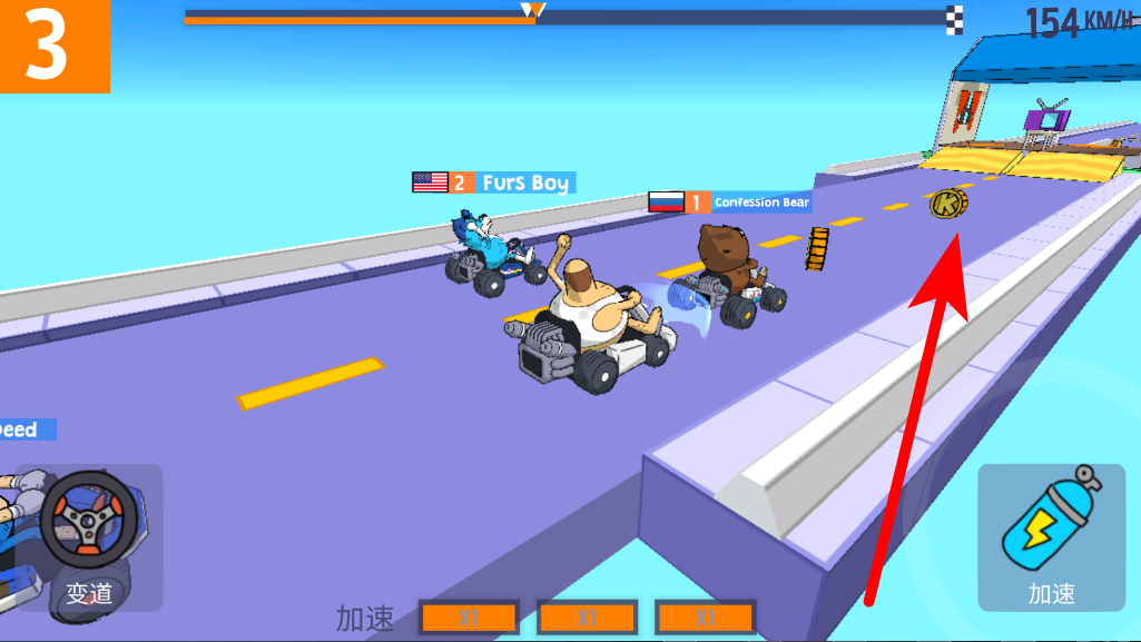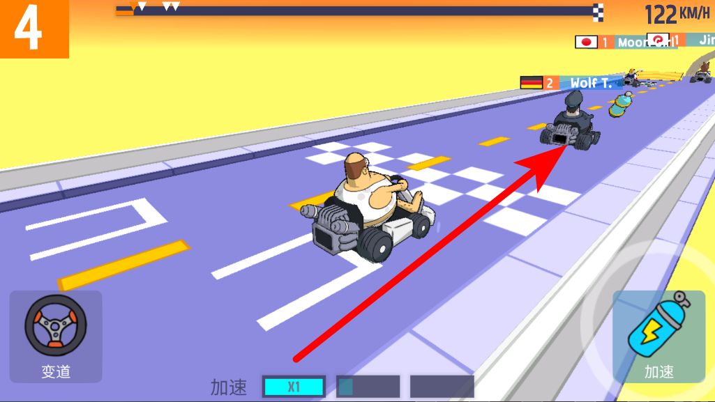 1、在竞速过程中,密切关注前方对手的位置,利用加速功能或灵活变道,努力追赶领先的对手,缩小与他们的距离,为超越对手创造机会。