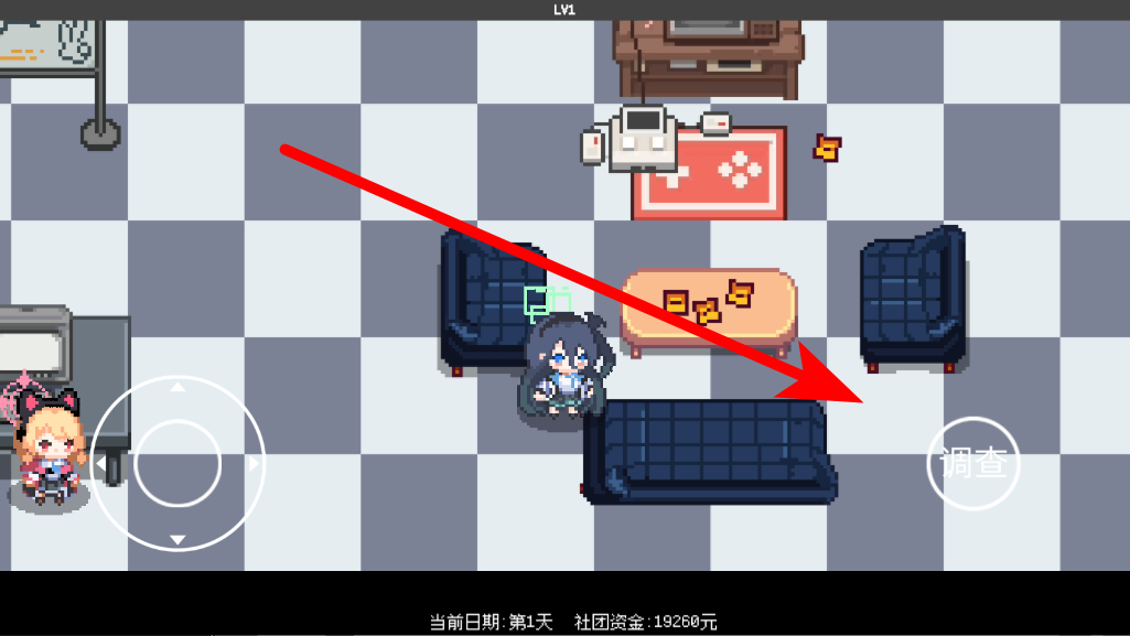1、通过左侧的移动按键,操控角色在场景中移动,可前往不同的位置,探索场景内的各个区域,为后续的调查与剧情推进创造条件。