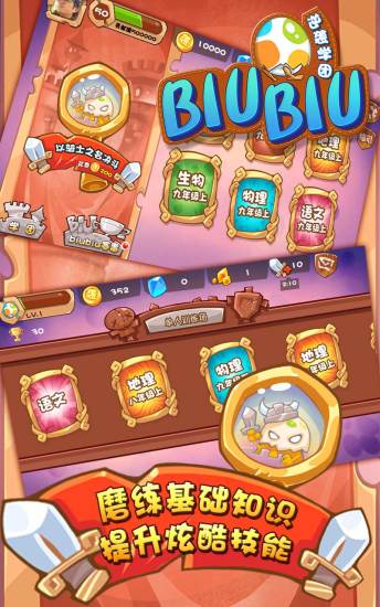 biubiu~初中学习专属神器,逗比属性、颜值超高,组学团、PK赛,数学、物理、化学、语文、地理、生物全覆盖。