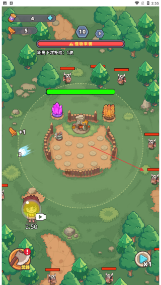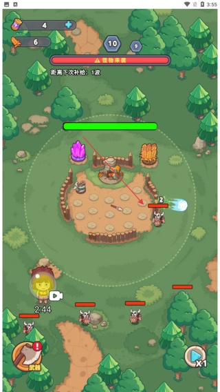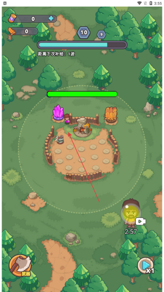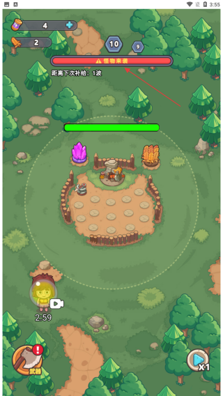 1、进入游戏查看界面上方资源数值0,了解距离下次补给:1波信息,守护基地等待敌人出现。