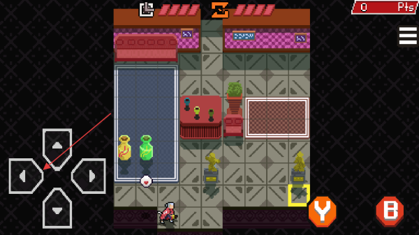 1、进入游戏通过屏幕左侧方向键操控角色移动在室内场景中探索。