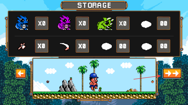 1、游戏开始前在STORAGE界面查看物品数量,了解自身携带道具情况,点击箭头进入游戏场景。