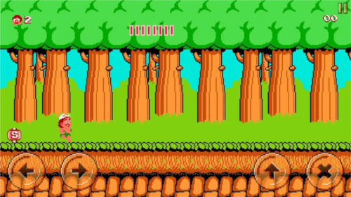 1、像素风格横板场景:采用复古像素画风构建横板闯关场景,森林的草木、山地的岩石、洞穴的钟乳石等元素都通过像素颗粒呈现,搭配明亮鲜艳的色彩。