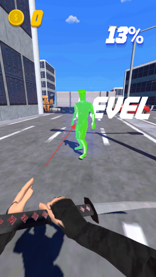 1、进入游戏查看屏幕左上角金币数0,依据右上方进度提示10%了解关卡进度,操控角色移动。