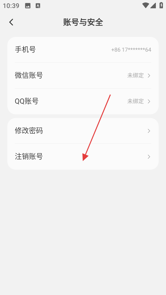3、在账号与安全页面,点击注销账号,进入注销账号说明页面。