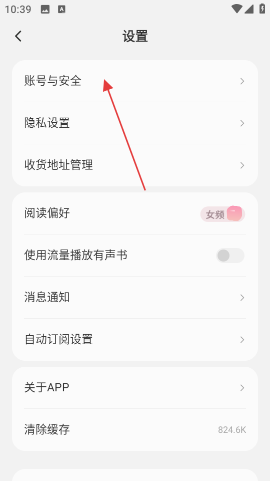 2、在设置页面,点击账号与安全,进入账号与安全页面。