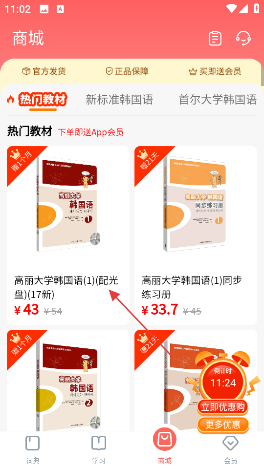 2、在商城页面,选高丽大学韩国语1配光盘17新。