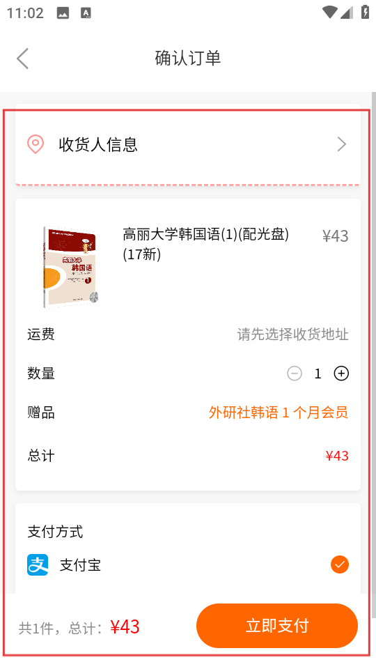 4、在确认订单页面,填写信息,选择支付方式后,点击立即支付完成购买。