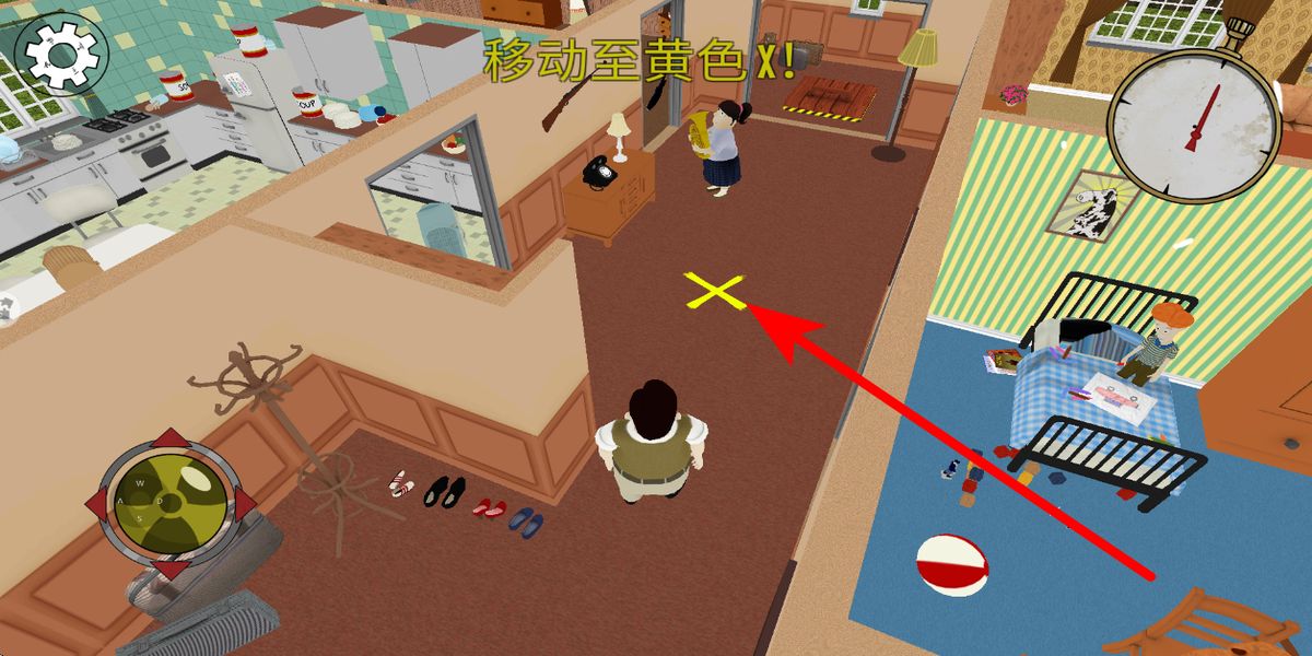 3、进入冒险后,要跟随指引行动,场景中会有诸如移动至黄色X等指引提示,按照这些指引,操控角色在场景中移动,熟悉操作与场景布局。
