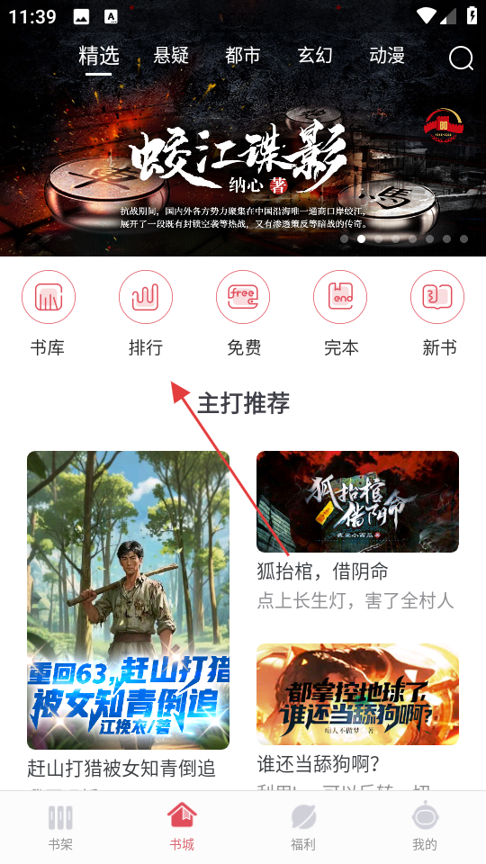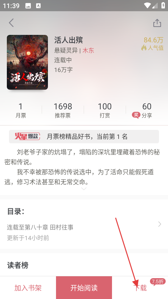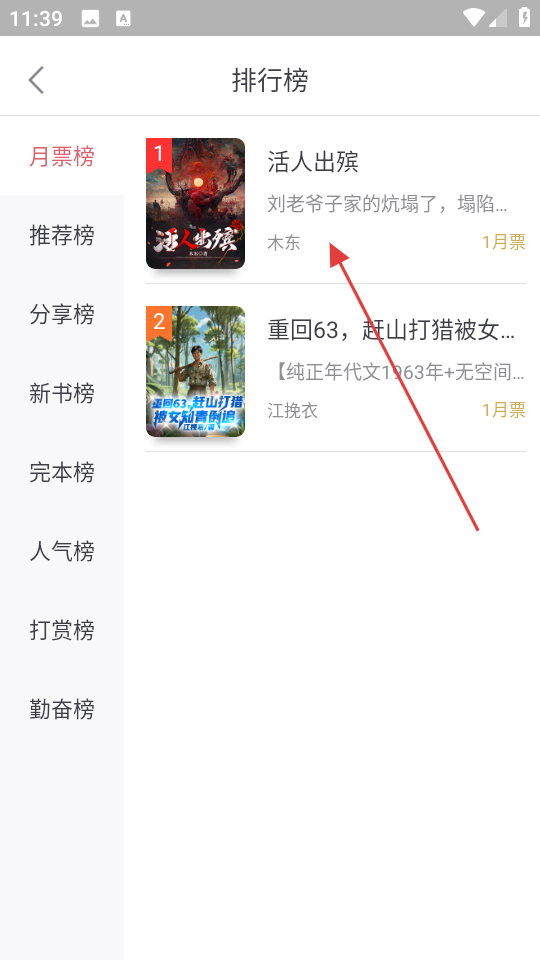 2、在排行榜页面,选择心仪的小说,如活人出殡。