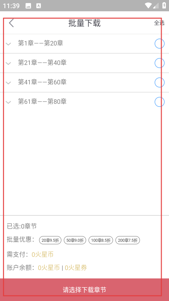 4、在批量下载页面,选择要下载的章节,进行下载操作。