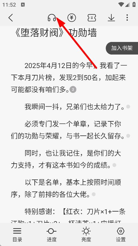 4、在阅读页面,点击耳机图标,可切换为听书模式。