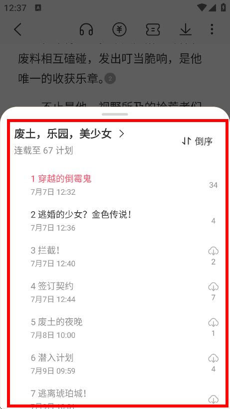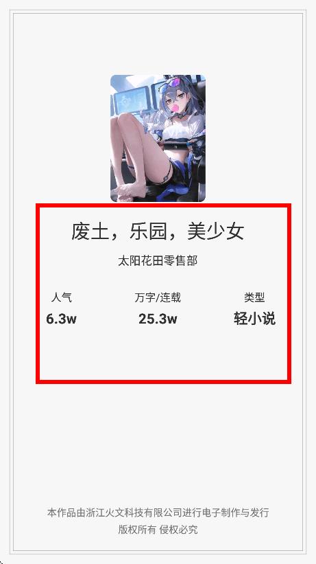 2、在书籍详情页,可查看废土,乐园,美少女的人气、字数、类型等信息。