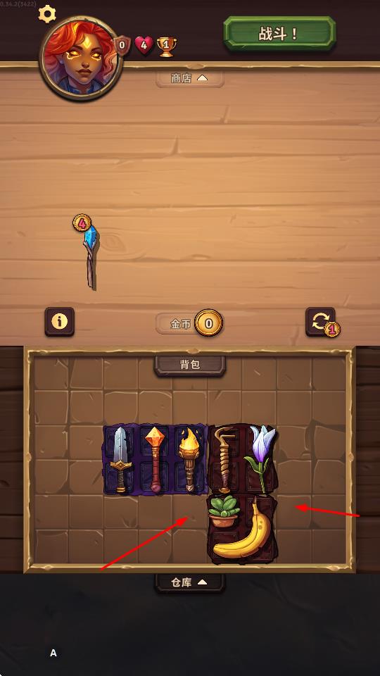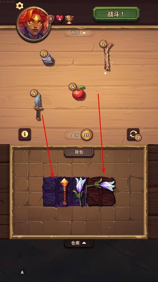 1、在商店界面,消耗金币购买药水、木棍、剑、苹果等物品,将其放入背包或仓库,管理物品库存,为战斗做准备。