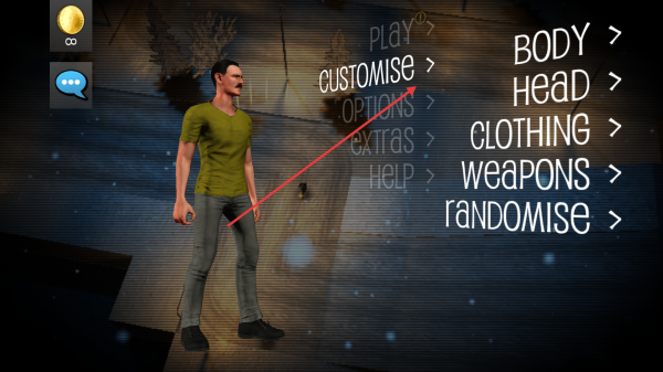 2、点击“CUSTOMISE”可对角色身体、头部、服装、武器等进行个性化定制。