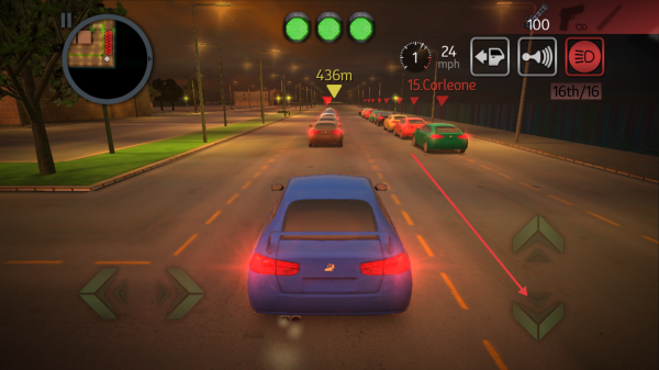 3、驾驶车辆时利用屏幕虚拟按键控制方向,留意速度、排名等信息争取领先。