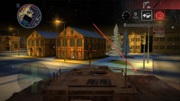 4、进入射击场景通过屏幕虚拟摇杆控制瞄准方向,对目标进行射击完成任务。