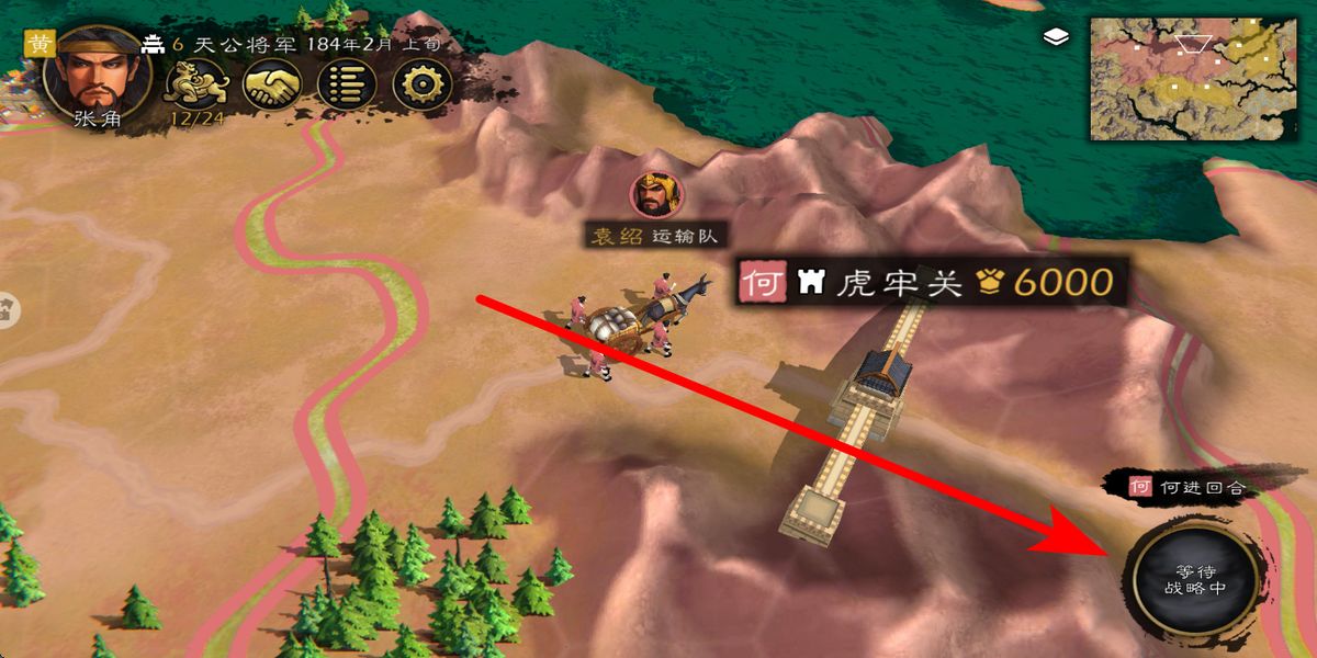 4、最后等待回合,在行动过程中,若处于战略等阶段,可点击等待,观察敌对势力布置推进回合,等待后续行动时机,把控征战节奏。
