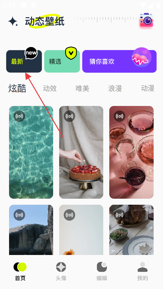 1、在动态壁纸页面,点击最新,进入最新壁纸页面。