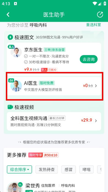 4、在分诊页面,可选择医生等问诊方式进行咨询。