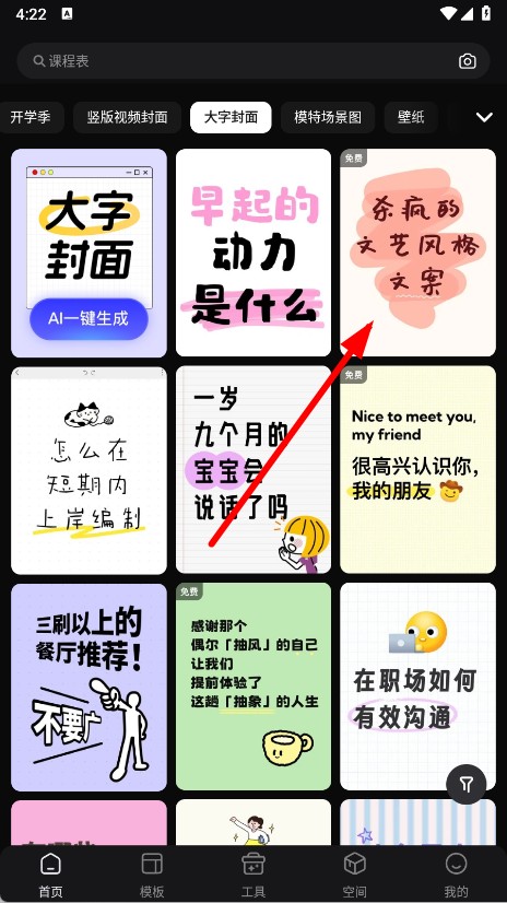 3、在大字封面模板列表里,挑选想要收藏的模板并点击。