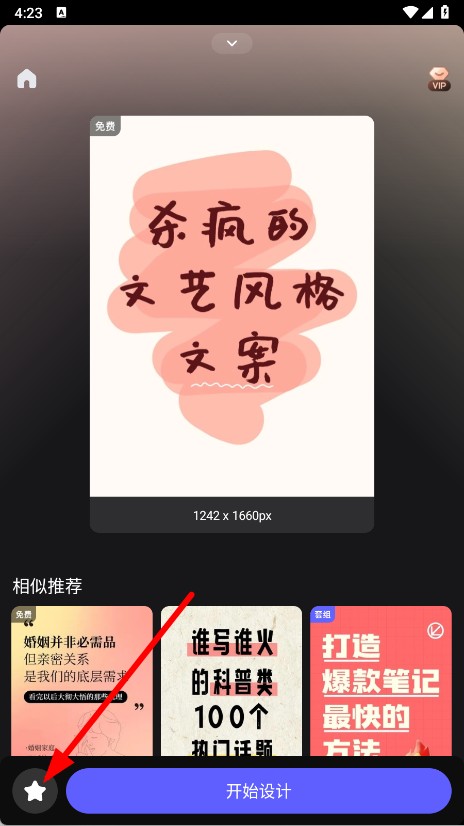 4、点击页面左下角的星形收藏图标,待图标状态发生变化,就说明该大字封面类模板已成功收藏。