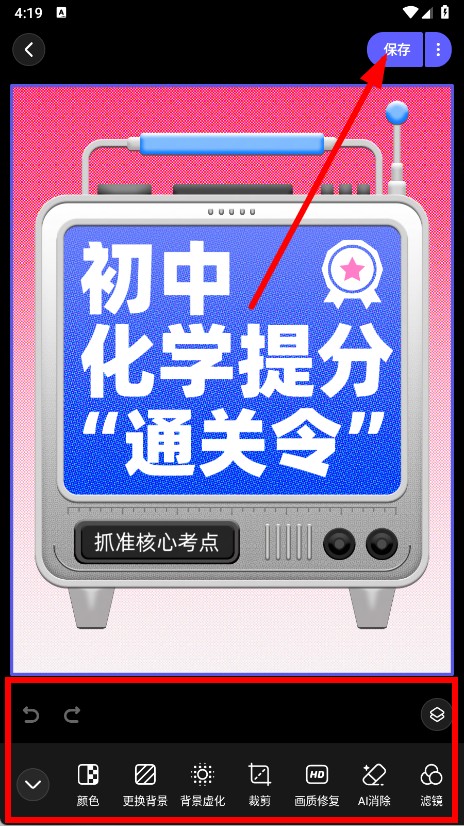 4、通过底部的颜色等工具对模板进行个性化调整,点击右上角的保存按钮。